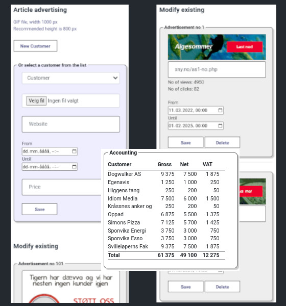 Newspapers need to make money. Therefore we have organized three advertising spaces with a built-in calendar-system incl. accounting for your convenience.